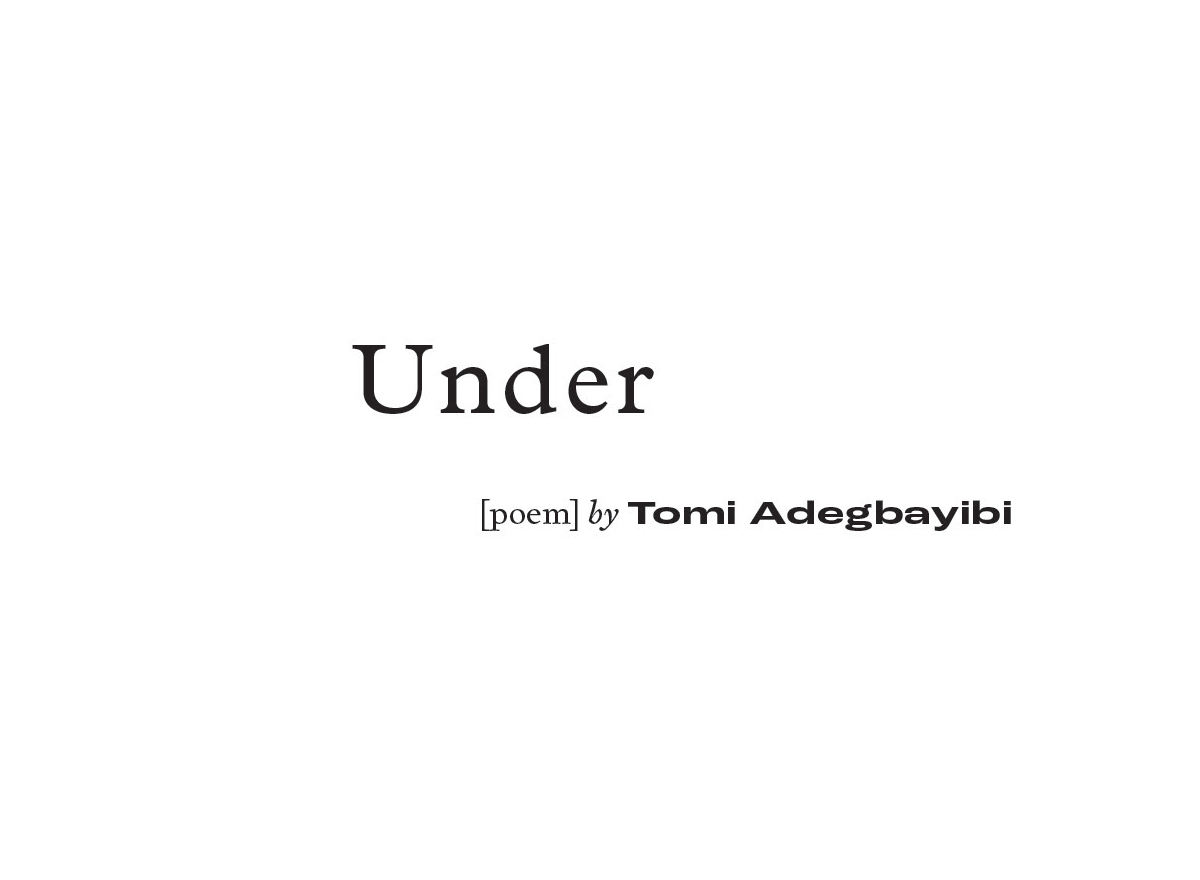 ‘Under’ [poem] by Tomi Adegbayibi Total 0 Shares Share 0 Tweet 0 Pin it 0 Previous Article Dead Leaves View Post Next Article Dizzy Dancers Blooming View Post You May Also Like View Post Poetry View Post Poetry View Post Poetry View Post Poetry View Post Poetry View Post Poetry View Post Poetry View Post Poetry Leave a Reply Cancel replyYour email address will not be published. Required fields are marked *Comment * Name * Email * Website Save my name, email, and website in this browser for the next time I comment.